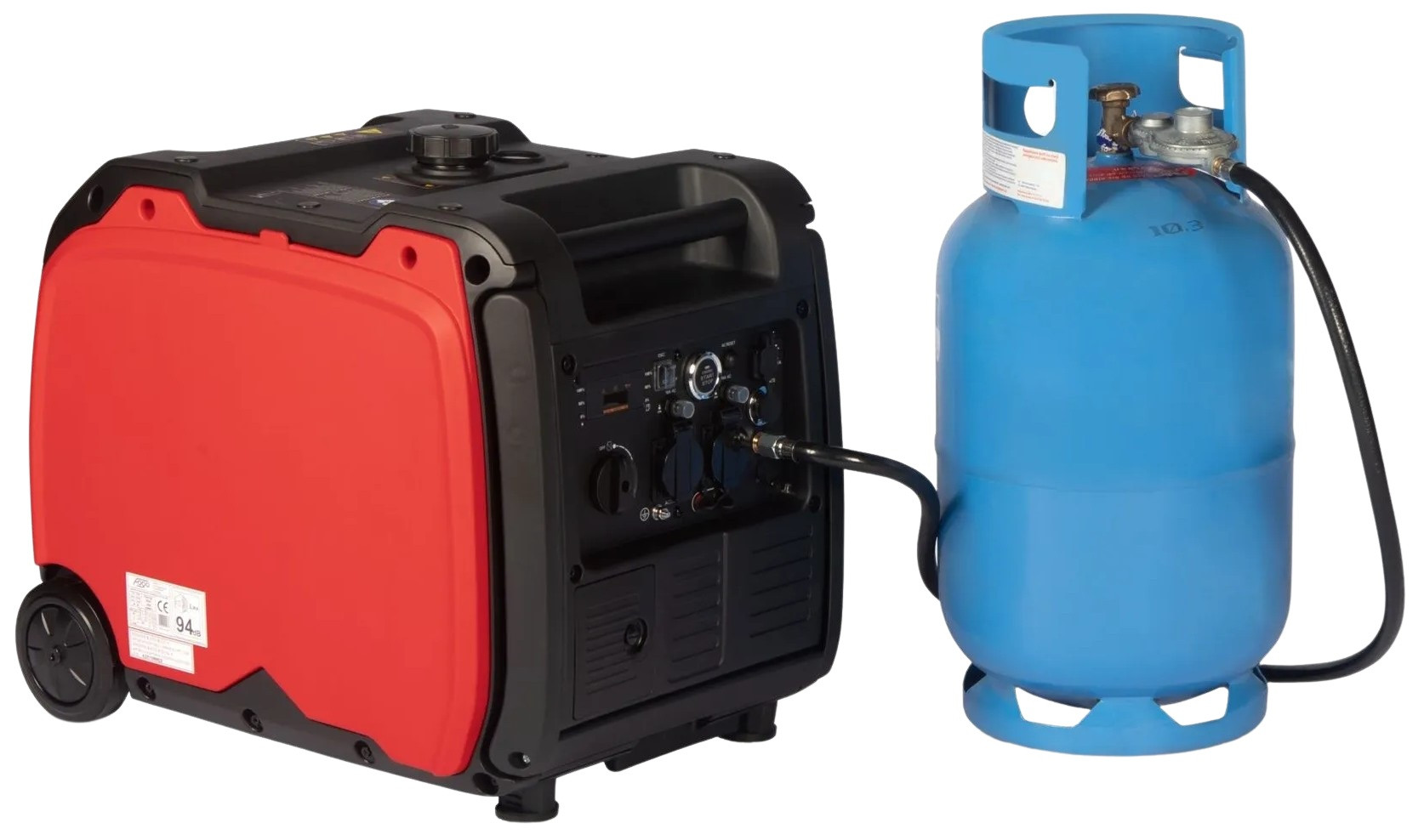 Agregat FOGO F6001 ISG posiada priorytet pracy na gazie, co oznacza, że możemy uruchomić agregat podłączony do butli z gazem, a gdy gaz LPG w butli skończy się to agregat automatycznie sam przejdzie na zasilanie w benzynę. W ten sposób bardzo wydłużony jest czas pracy bez tankowania.